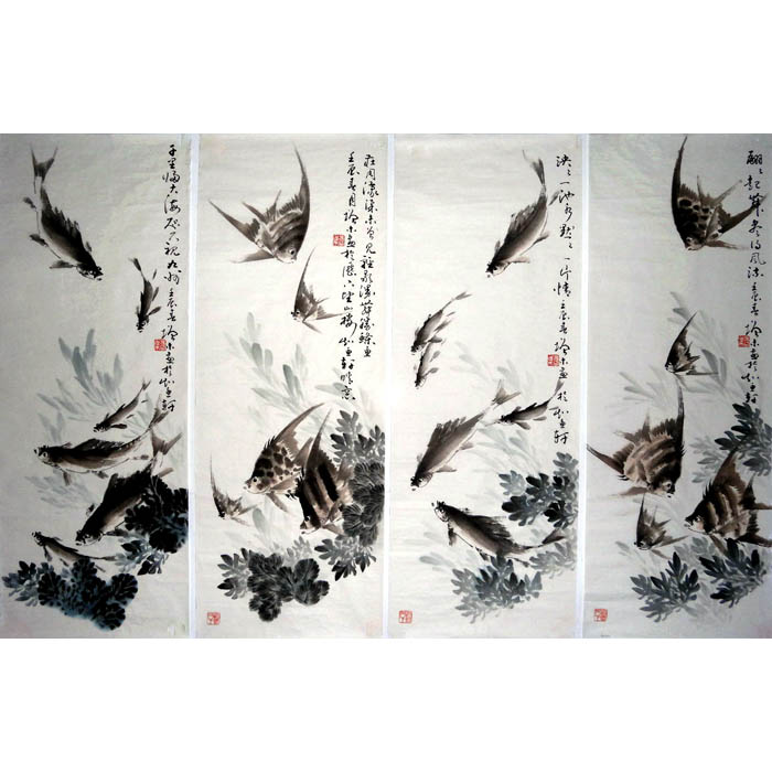 魚四條屏